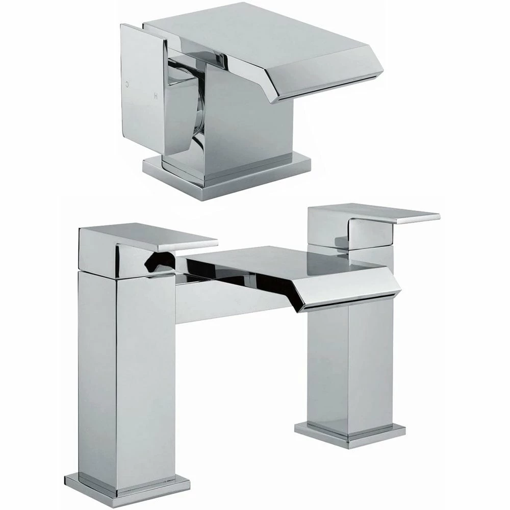 Astini Flat Waterfall Chrome Bathroom Basin Mixer Tap & Slotted Push Open Waste ASTQ05AV