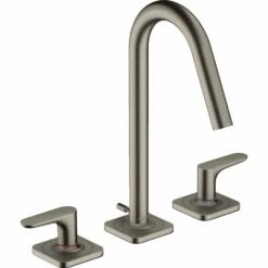- AXOR Citterio M offers single-lever, two-hole and three-hole basin mixers in different heights and forms, including numerous wall-mounted variants. The collection includes faucets in a choice of angular parabolic or gently sloping spouts, with several handle and plat options. The wall-mounted single-lever basin mixer shown here comes in two different lengths and, for mounting, a choice of wall flanges or a single continuous plate.