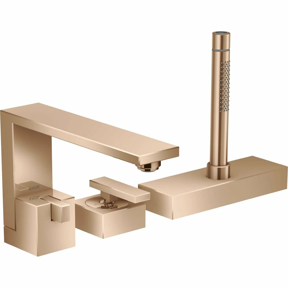 - Monumental in scale, architectonic in form, AXOR Edge is well suited to both minimalist and more extravagant bathroom styles. At the bathtub, the collection includes a bath spout for the tub rim, a three-hole single-lever rim-mounted mixer, a single-lever bathtub mixer for concealed installation, a rim-mounted bath set with hand shower, and an impressive floorstanding bathtub mixer, shown here in Polished Black Chrome.