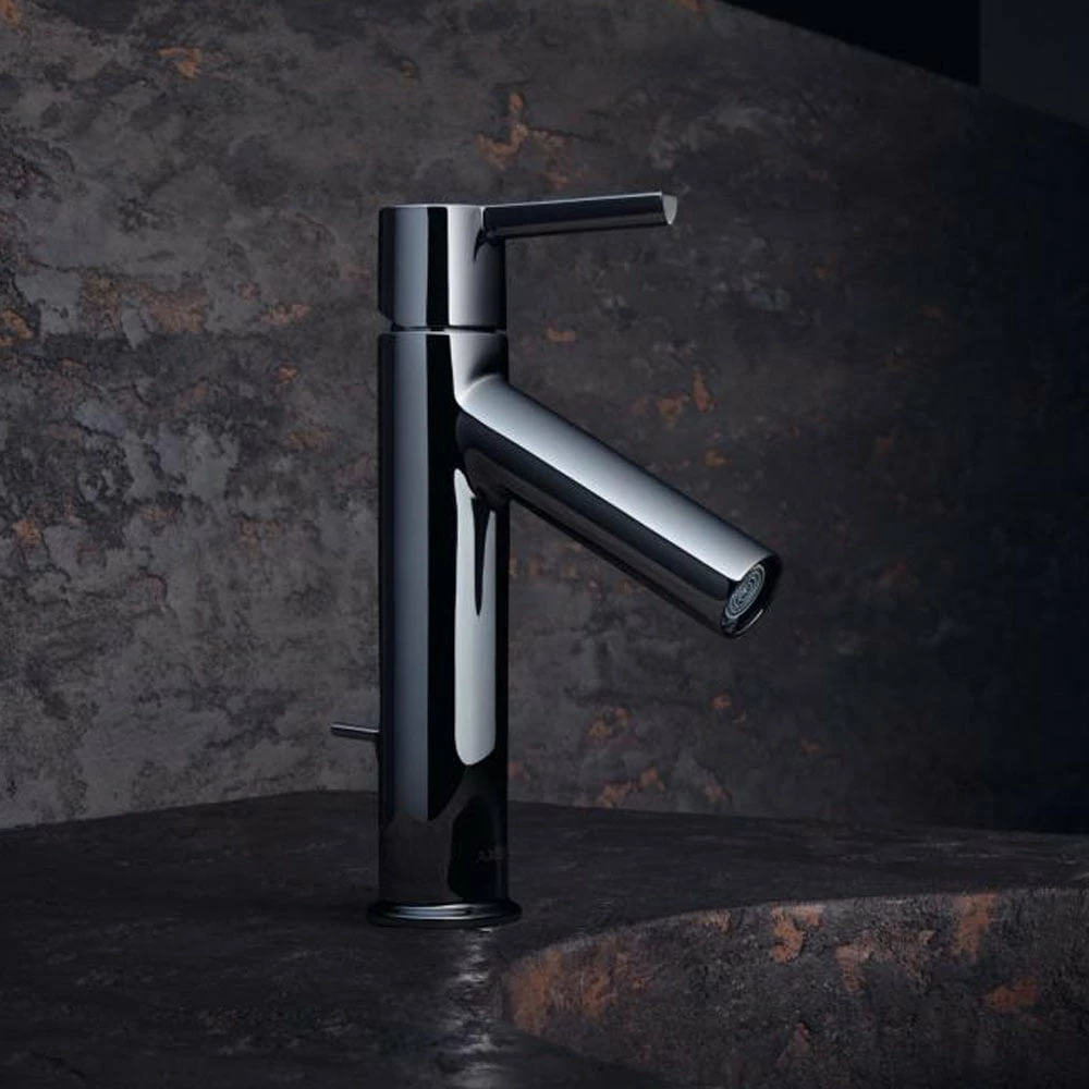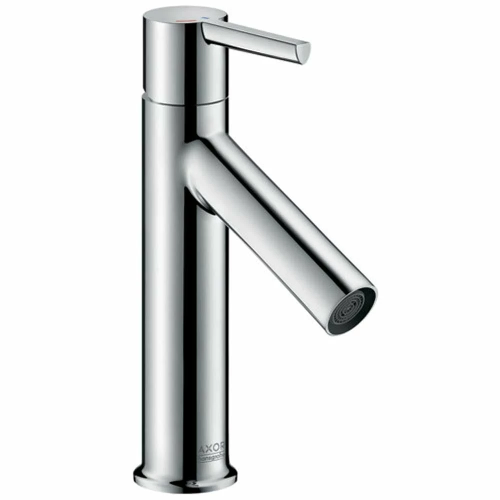 - Timeless by design, AXOR Starck evokes the primitive hand pump, humanity’s earliest means of drawing water. Encasing an ultra-slim cartridge to regulate the flow-rate, the iconic single-lever faucet consists of two cylinders – one a vertical base, the other a diagonal spout – crowned by a choice of pin or feather handle. Simple, rational, reduced to the essential, the mixers are adaptable to any bathroom décor.