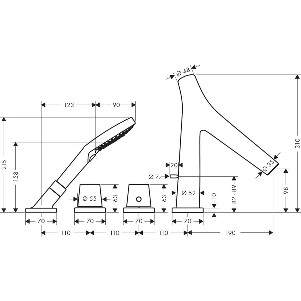 - Maximum pull-out length of hand shower: 1.10 m