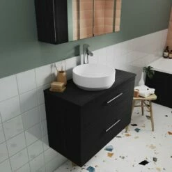 Nuie Arno Charcoal Black 800mm Wall Hung 1-Drawer Vanity & Worktop