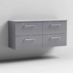 Nuie Arno Cloud Grey 1200 Wall Hung 4-Drawer Vanity Unit & Worktop