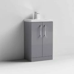 Nuie Arno Compact Cloud Grey 500mm Floor Stading 2-Door Vanity Unit & Ceramic Basin
