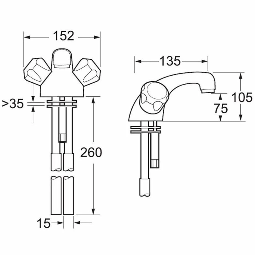 Deva Profile Chrome Twin Handle Mono Basin Mixer Tap DCM113B