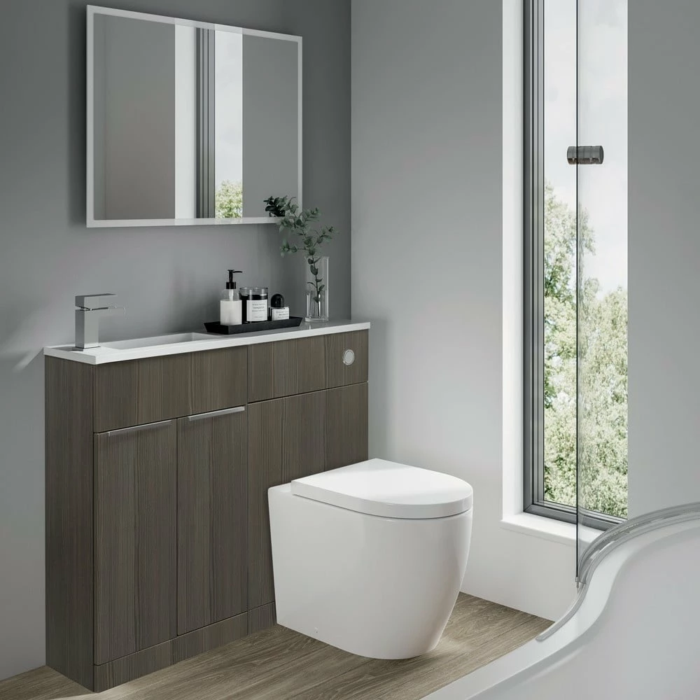 - This elegant and minimal range combines a WC, Vanity and one-piece solid surface Straight Basin, all in one compact unit. Transform even the smallest bathroom into a practical and stylish space with ease.