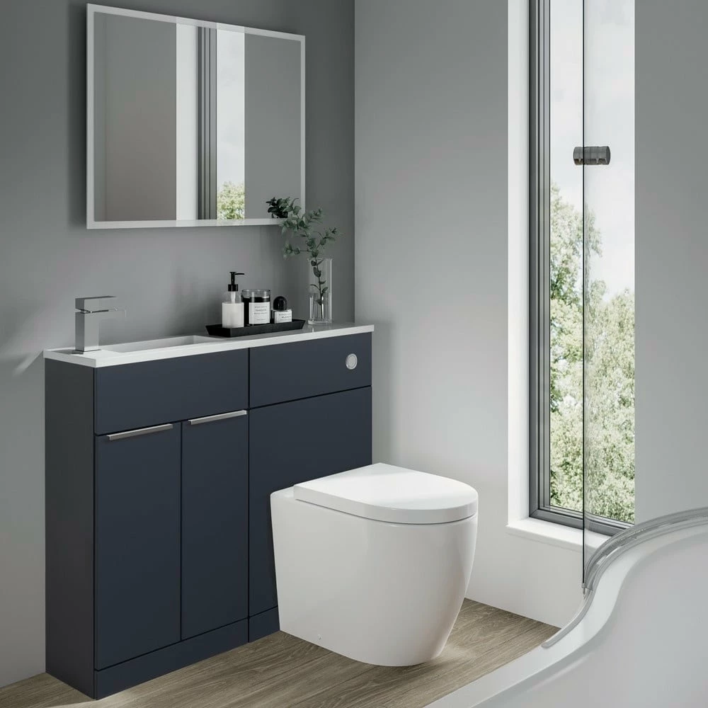 - This elegant and minimal range combines a WC, Vanity and one-piece solid surface Straight Basin, all in one compact unit. Transform even the smallest bathroom into a practical and stylish space with ease.