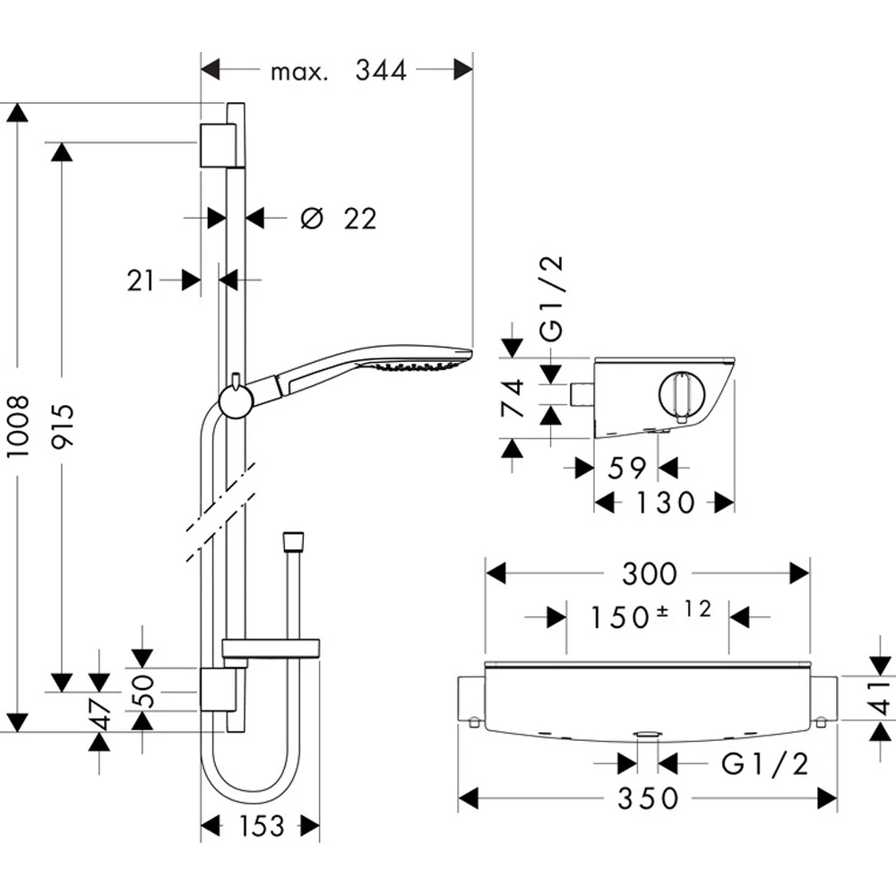 Raindance Select S 150 3Jet Hand Shower / Unica’S Puro Shower Set 0.90 M With Soap Dish