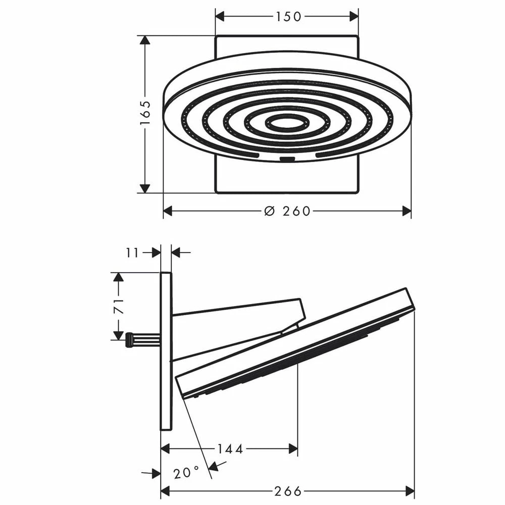 - Shower head size: 260mm