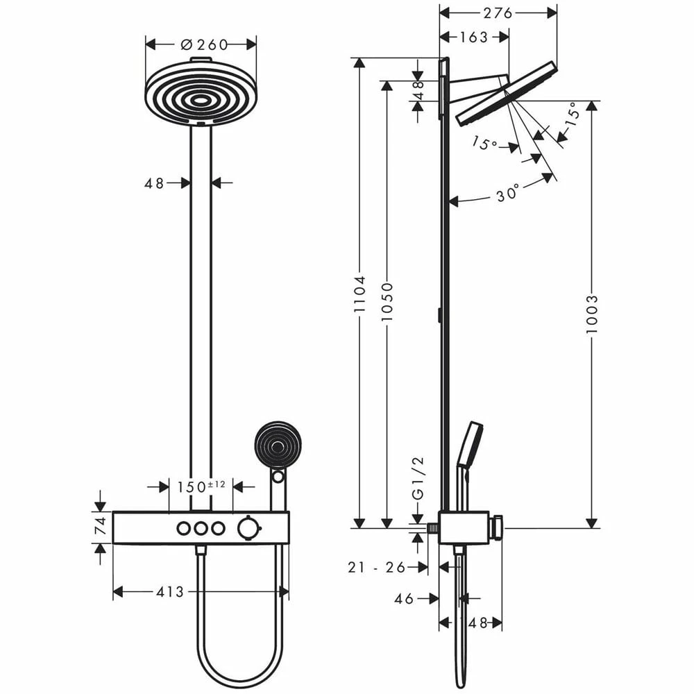Thermostat is delivered with buttons hand shower, PowderRain, Intense PowderRain