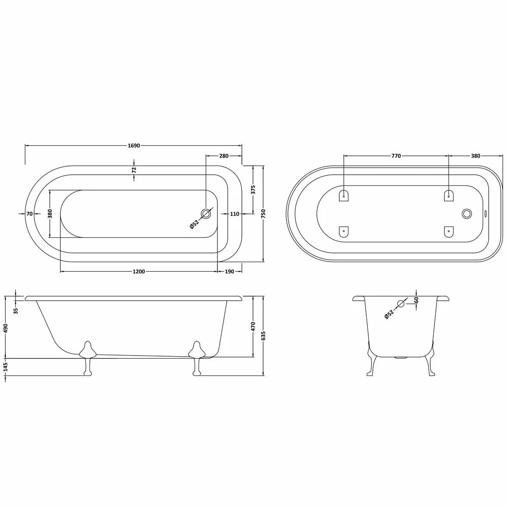 - All baths come supplied with leg sets as standard
