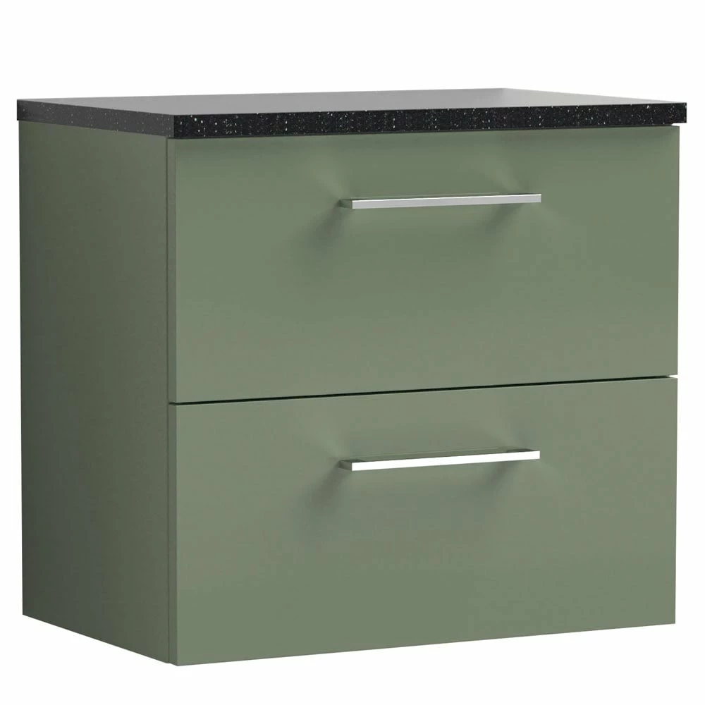 Nuie Lunar Satin Green 800 Floor Standing 2-Drawer Vanity Unit & Basin