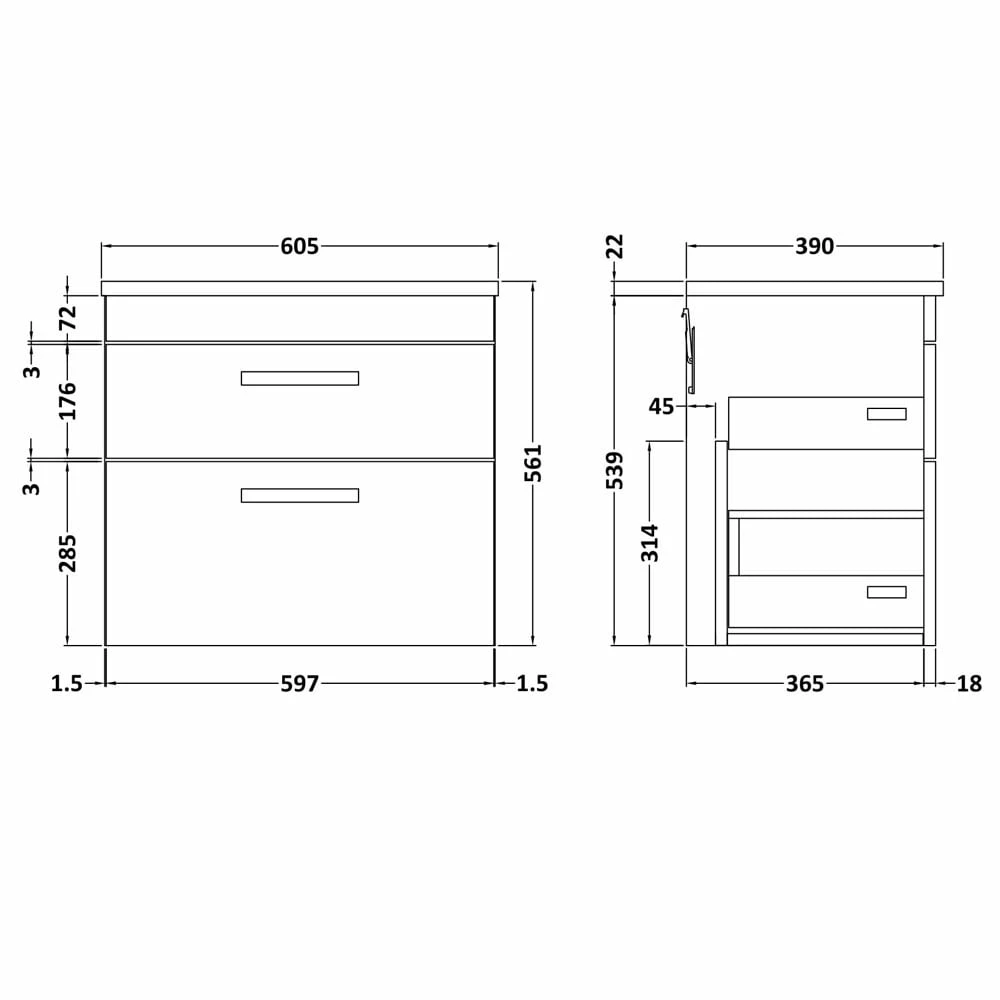 - Cabinet Thickness: 18mm