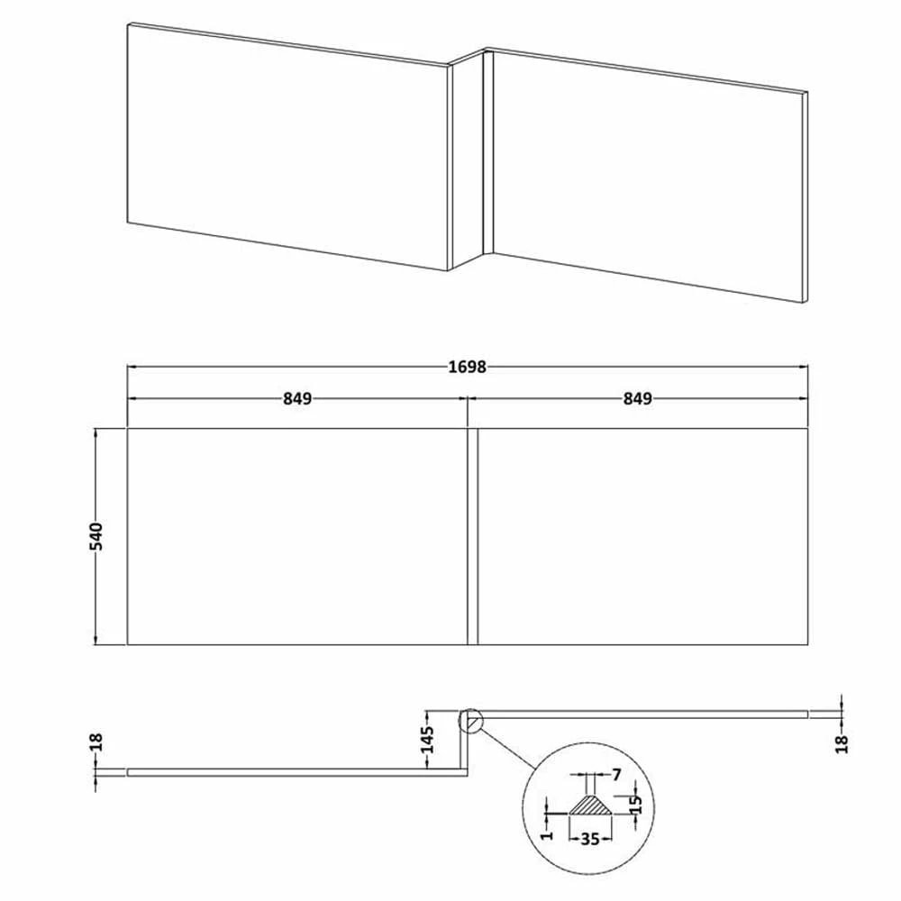 - Suitable for use with square shower baths