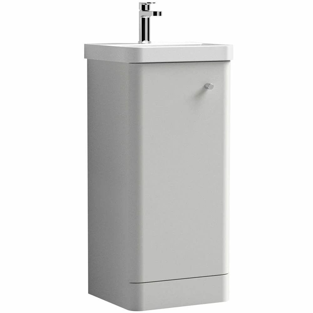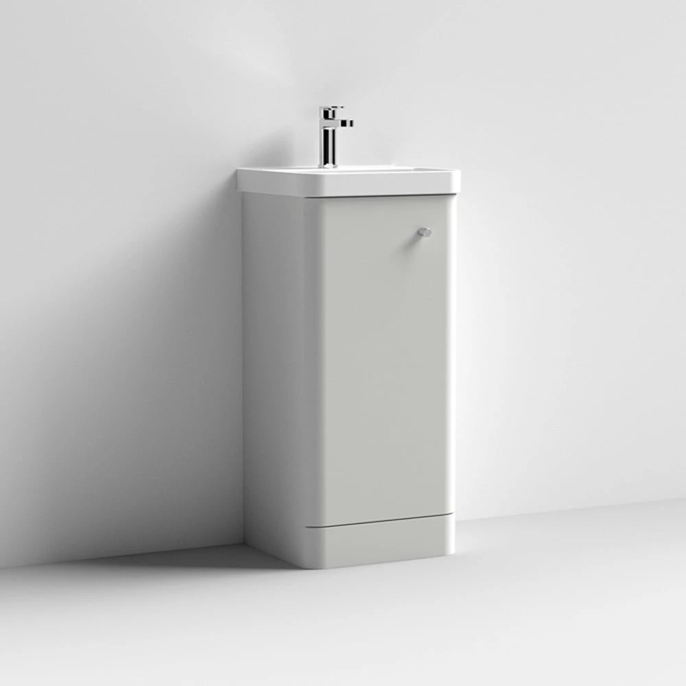 - Contemporary floor standing design provides ample storage for all your bathroom toiletries and cleaning supplies