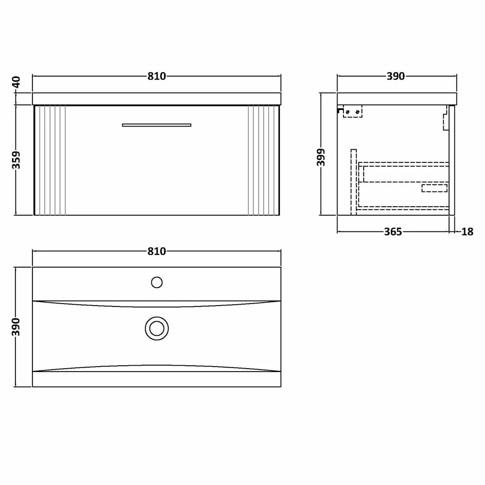Nuie Lunar Satin Green 800 Floor Standing 2-Drawer Vanity Unit & Basin