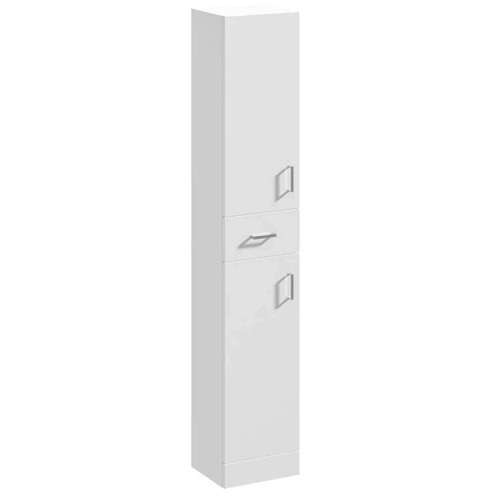 - The gloss white finish compliments any modern bathroom to create a designer look