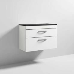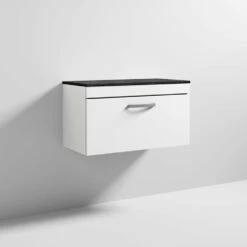 Nuie Athena Gloss White 800mm Wall Hung Vanity With Black Worktop ATH069LSB