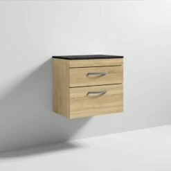 Nuie Athena Natural Oak 600mm Wall Hung Vanity With Black Worktop ATH045LSB