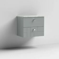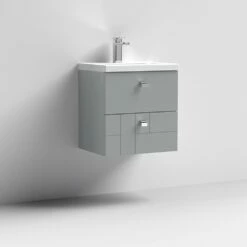 Nuie Blocks Satin Grey 600mm Wall Hung Vanity Unit & Grey Worktop BLO202LBG