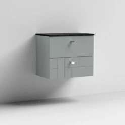 Nuie Blocks Satin Grey 600mm Wall Hung Vanity Unit & Black Worktop BLO202LSB