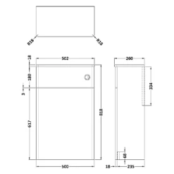 Nuie Classique Satin White 500 Wall Hung 3-Drawer Vanity Unit & 3TH Basin