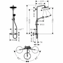 Hansgrohe Soft Cube Thermostatic Valve With Croma Select (180) Overhead And Baton Hand Shower