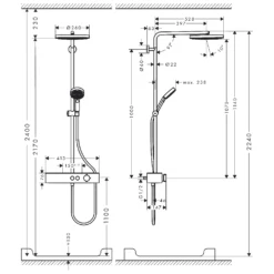 Hansgrohe Pulsify Chrome 260 1Jet EcoSmart Thermostatic Showerpipe & ShowerTablet Select 400
