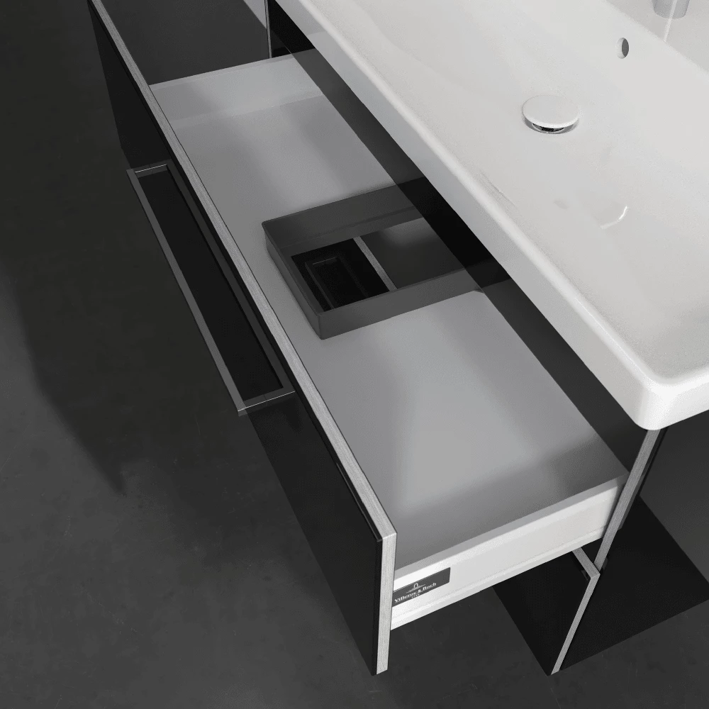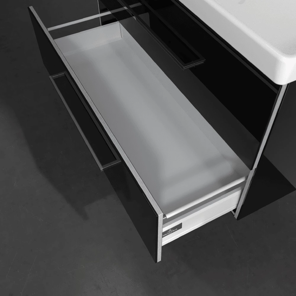 - Bathroom furniture with full extension allows drawers to be opened to their full depth making the contents fully visible. This lets you keep an overview in the bathroom and all accessories within reach thanks to the full extension.